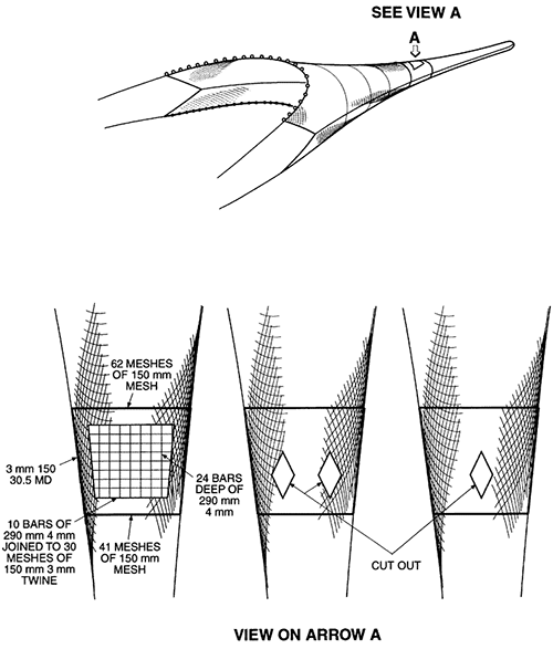 Based on underwater camera footage, it’s known cod rise up after they enter the seine, and modified seines in Europe have shown decreased cod catches. To take advantage of the upward movement of cod, trials were carried out in 1995 using a seine with the square removed from the top of the net. The top was further reduced in 1996 by removing the first top belly.