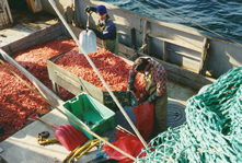The processors prefer that trips be no more than 7 days duration, as shrimps tend to be more sensitive to spoilage than other species. It is preferable that they are cooked, peeled and frozen within 2 days of landing. It is a seasonal fishery with much of the machinery being unsuitable for processing other species.